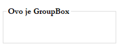 Kontrola GroupBox je namenjena grupisanju ostalih kontrola koje sadrži forma ( CheckBox i/ili RadioButton). Ima veoma slična svojstva kao i predhodne dve kontrole. Kompletan opis svih konstruktora, svojstava , metoda i događaja uvek je dostupan  na Microsoftovom sajtu , na adresi:  https://learn.microsoft.com/en-us/dotnet/api/system.windows.forms.groupbox?view=windowsdesktop-8.0